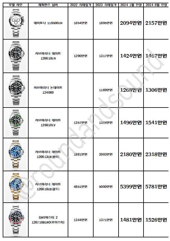 롤렉스 시계 인상폭 정리 및 향후 중고 시장 시세에 미칠 영향
