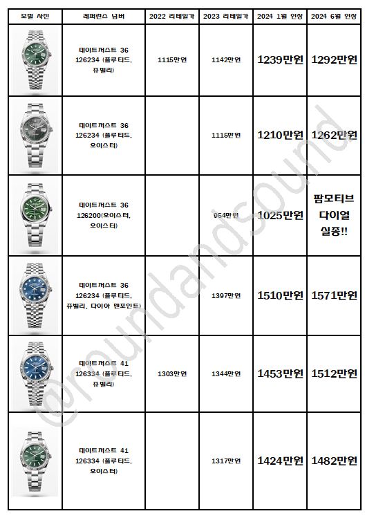 시계 가격을 1년에 두번 올리는건 본적 없는것 같은데…와… 정말 대단하다는 말 밖에 나오지 않네요.